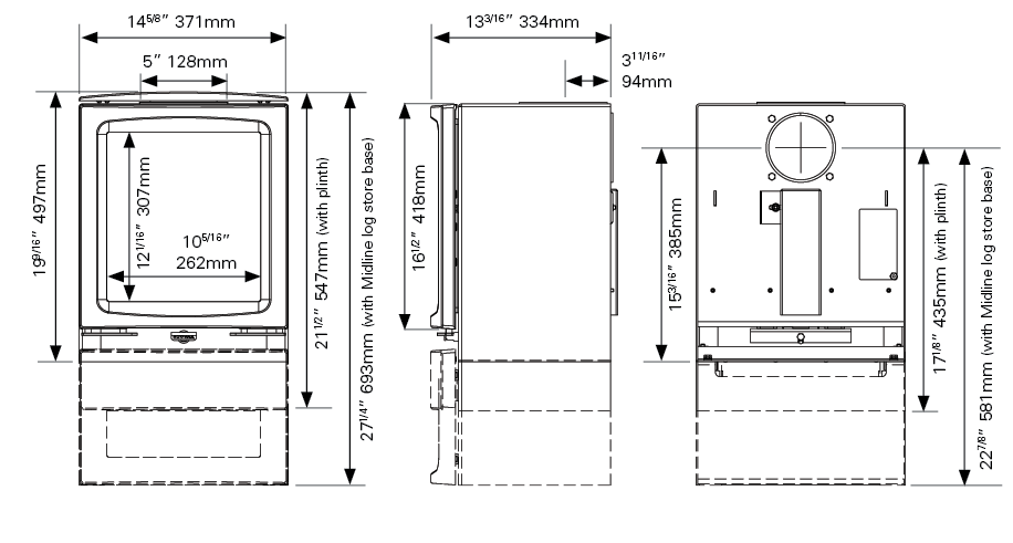 - Flue Size: 125mm 5 inch