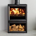 Increasing the vertical presence of these large format wood burning and multi-fuel stoves, the Stovax View 8 Midline features an integral log store that elevates the expansive firebox and widescreen flame view. The View 8 Midline wood burning and multi-fuel stove is a great choice for more spacious settings that will benefit from the high efficiency 8kW heat output as well as the stove’s impressive size.