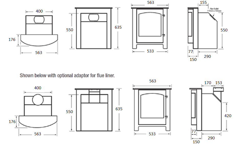 - Suitable for a standard class 1 chimney or with a 5"/125mm adaptor to flue liner