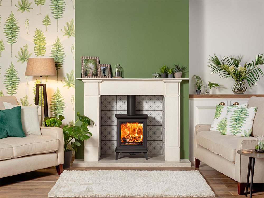 The Stovax Sheraton 5 multi-fuel log burner features a bevelled door frame with matching cornicing to the cast iron top and bottom. Timeless aesthetics characterise this elegant stove, alongside state-of-the-art, low emission combustion systems