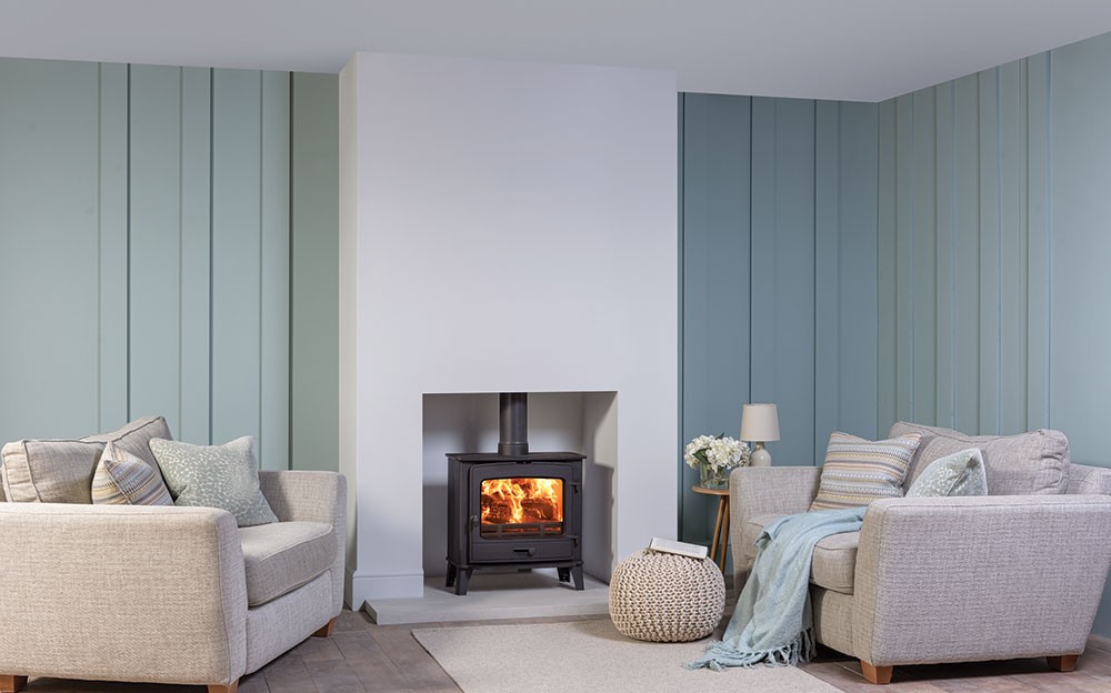 The Stovax County 5 Wide Fixed Grate Wood Burning and Multi-fuel Ecodesign stove brings presence and impressive flame visuals in equal measure. With a wider firebox than the County 5, the 5 Wide offers the same great flame visuals and 5kW heat output, but with a slimline depth that’s designed to be used where a shallower depth is required.