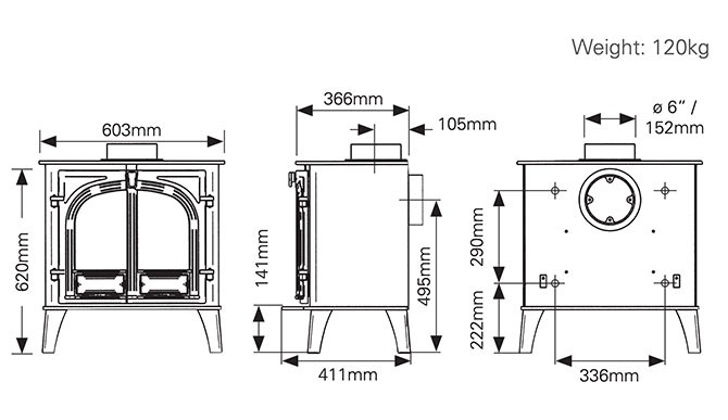 - Flue Size: 150mm 6 inch